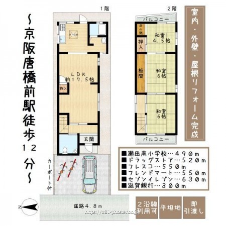 ■外壁・屋根・室内改装済み■キッチン、ユニットバス、洗面台、給湯器新調で室内ピカピカ!■京阪唐橋駅徒歩12分、2沿線利用可■近隣に商業施設が揃い、生活至便な立地