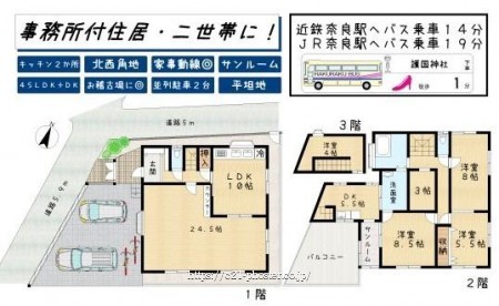 ■事務所、お稽古の場にもオススメ◎■2階に洗面、浴室があるため洗濯動線コンパクト!朝の準備もスムーズです■バス停へ徒歩1分、近鉄奈良駅・JR奈良駅へアクセス至便