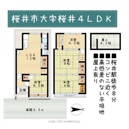 ■桜井駅徒歩8分!収益物件としても◎■コンビニが近く買い物至便■家事動線・生活動線がコンパクトな間取り■高低差のない平坦地