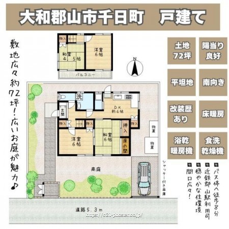 ■敷地約72坪■広々とした南庭■道路との高低差がない平坦地■穏やかな住環境■陽当たり良好■室内リフォーム歴有■床暖房・浴室乾燥暖房機・食洗器等充実した室内設備