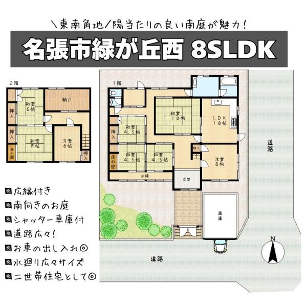 ■東南角地につき陽当たり良好!■縁側から南庭を望めます■敷地広々◎家庭菜園やガーデニング可■続き間、納戸付8SLDK!