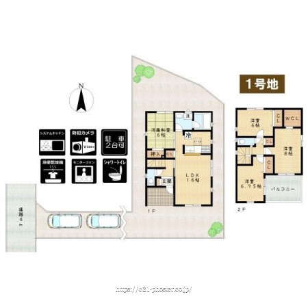 緑豊かな住宅地 閑静な住宅地 階建 2階建 部屋向き 南向き LDK広さ 15帖以上 全居室6帖以上 和室 ガス 都市ガス 複層ガラス 駐車可能台数 2台可 ウォークインクローゼット システムキッチン シャンプードレッサー シャワー 浴室暖房 温水洗浄便座 バルコニー バルコニー有 南面バルコニー 全居室複層ガラス 防犯カメラ ※設備名をクリックで対象の設備の物件一覧を絞り込みローンシミュレーション