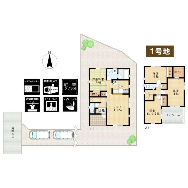 ■全2区画■駐車2台可■全居室収納あり■ウィークインクローゼット、浴室暖房乾燥機、シャワートイレ、シャンプードレッサー、TVモニターホン、防犯カメラ有
