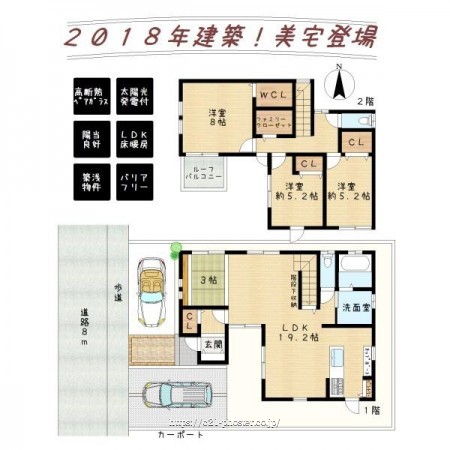 耐震構造 免震構造 制震構造 整形地 閑静な住宅地 前面棟無 前道6m以上 階建 2階建 外断熱 日当り良好 通風良好 LDK広さ 18帖以上 和室 オール電化 フローリング 駐車可能台数 2台可 リビング階段 全居室収納 クローゼット システムキッチン カウンターキッチン パントリー キッチン床暖房 食器洗乾燥機 食器乾燥機 浄水器 独立洗面台 シャンプードレッサー バス広さ 1坪以上 オートバス 追い焚き シャワー 浴室暖房 浴室乾燥機 トイレ2ヶ所 温水洗浄便座 バルコニー バルコニー有 ワイドバルコニー 南面バルコニー ルーフバルコニー 省エネルギー対策 高気密高断熱住宅 省エネ給湯器 TVインターホン 整備された歩道 小学校 徒歩10分以内 ※設備名をクリックで対象の設備の物件一覧を絞り込みローンシミュレーション